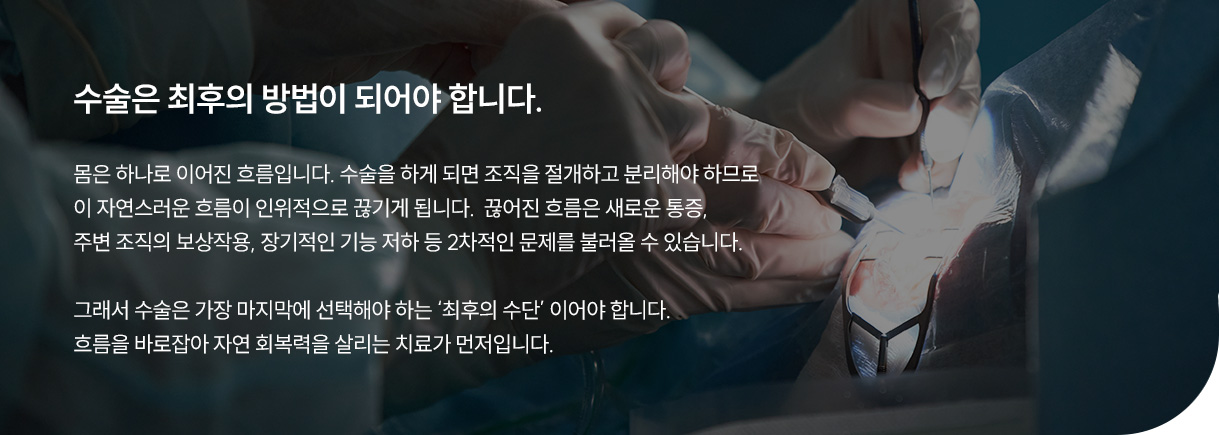 몸이 스스로 회복할 수 있는 환경을 만드는 치료를 합니다.