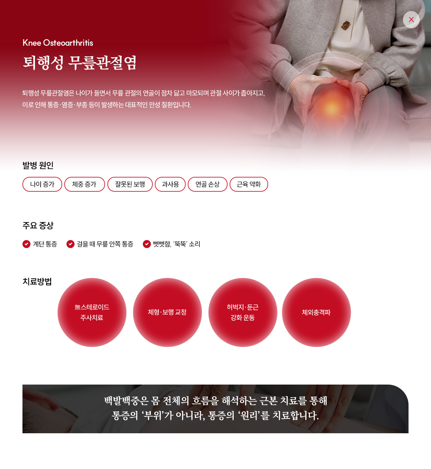 통증은 ‘무릎’에서 느껴지지만, 원인은 무릎이 아닐 수 있습니다.